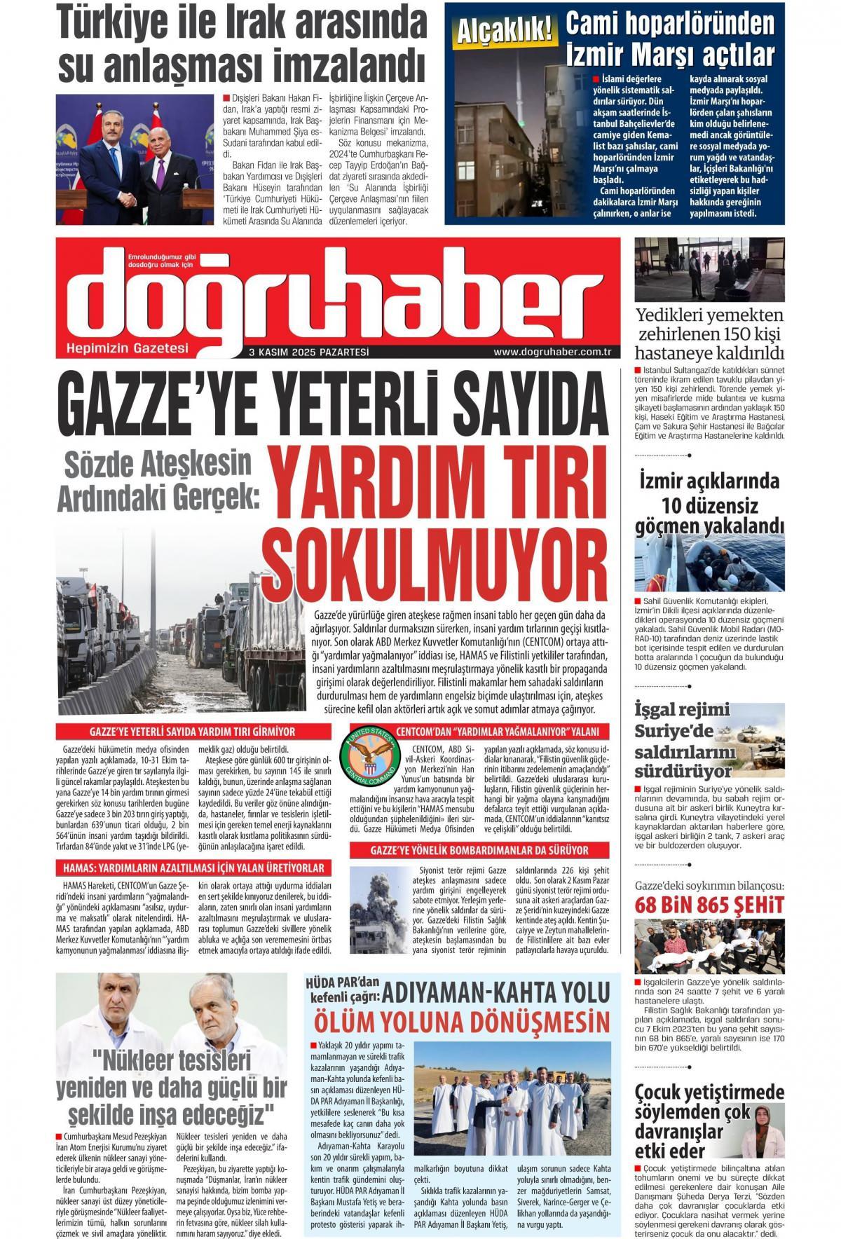 Doğru Haber Gazetesi 3 Kasım 2025 Günü Manşeti