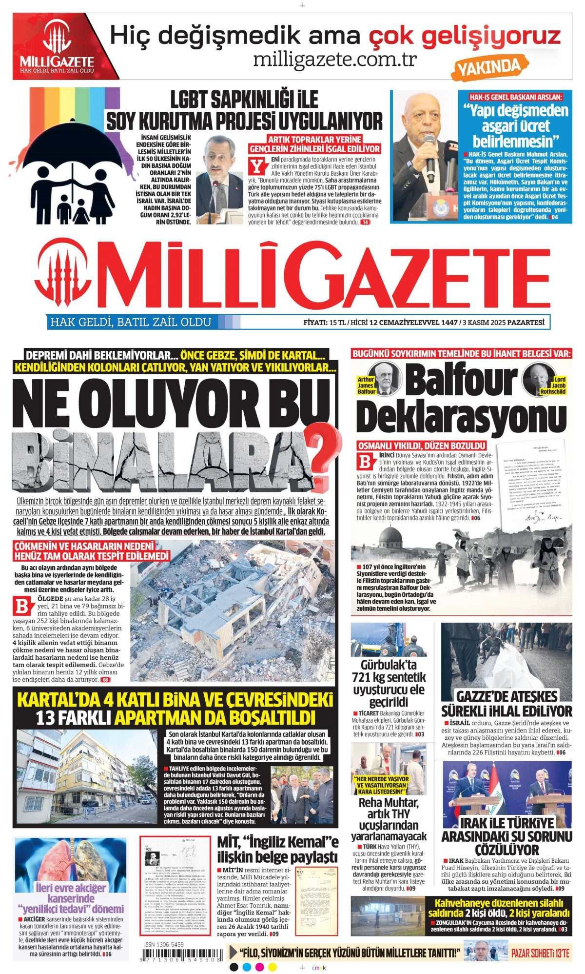 Milli Gazetesi 3 Kasım 2025 Günü Manşeti