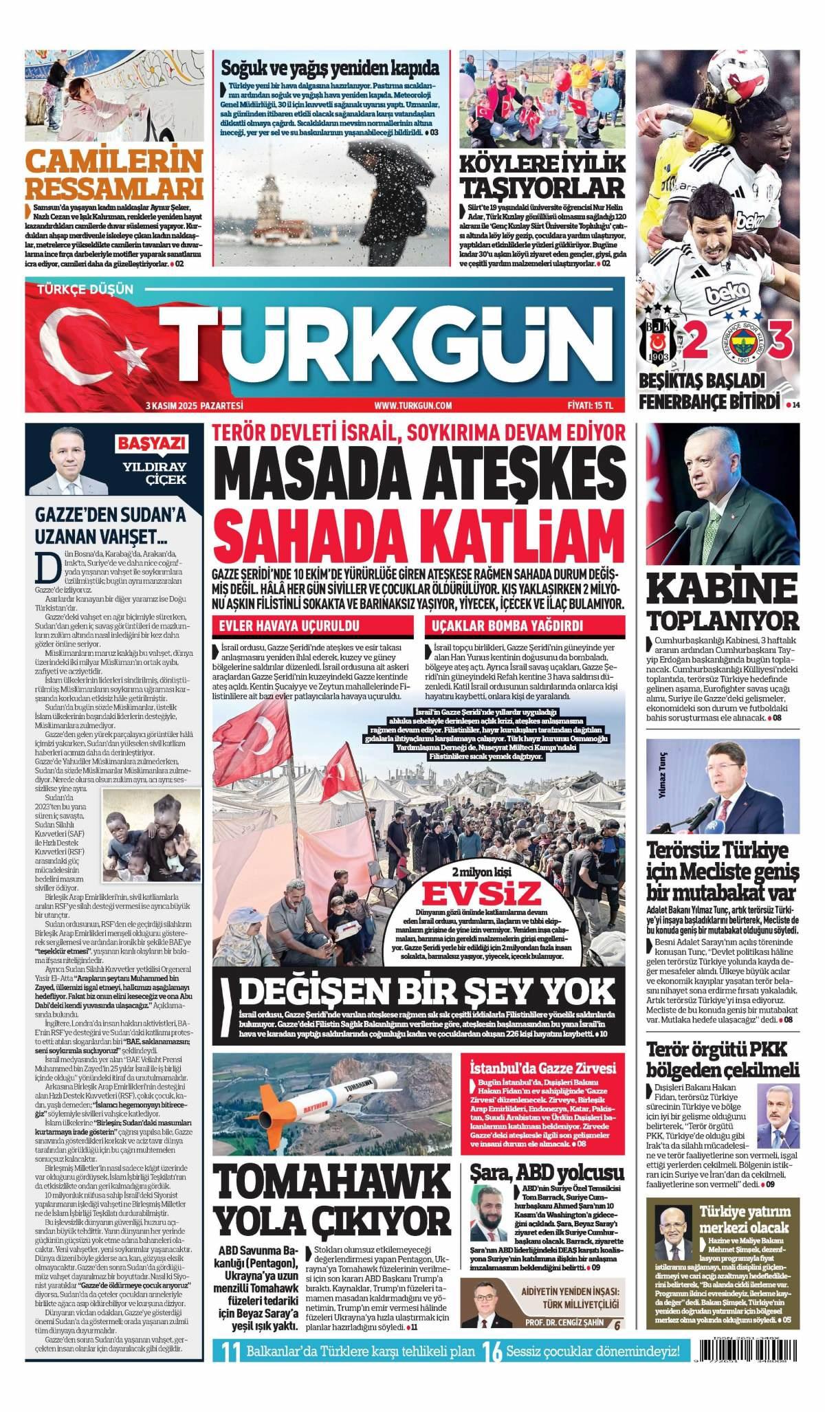 Türkgün Gazetesi 3 Kasım 2025 Günü Manşeti