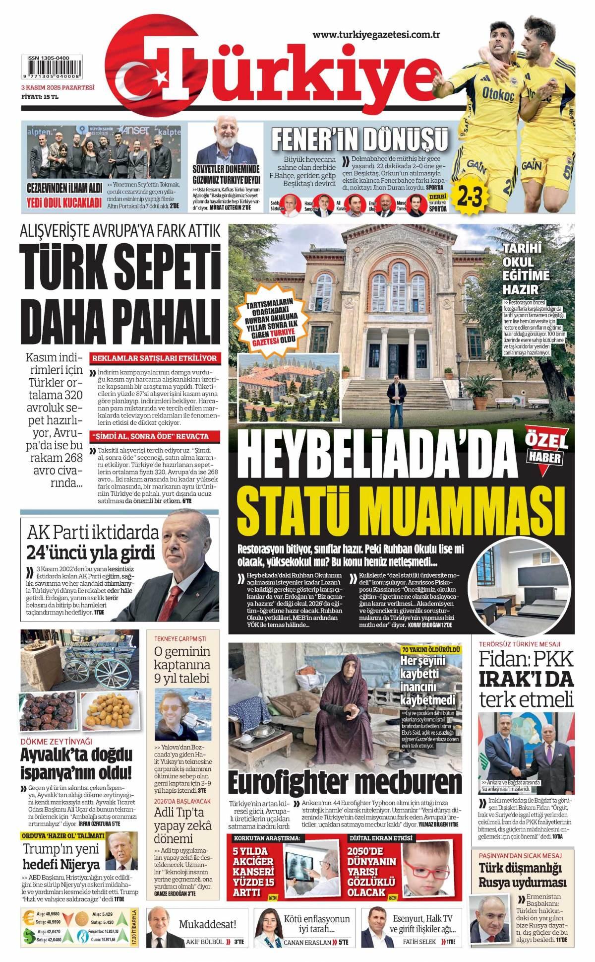 Türkiye Gazetesi 3 Kasım 2025 Günü Manşeti